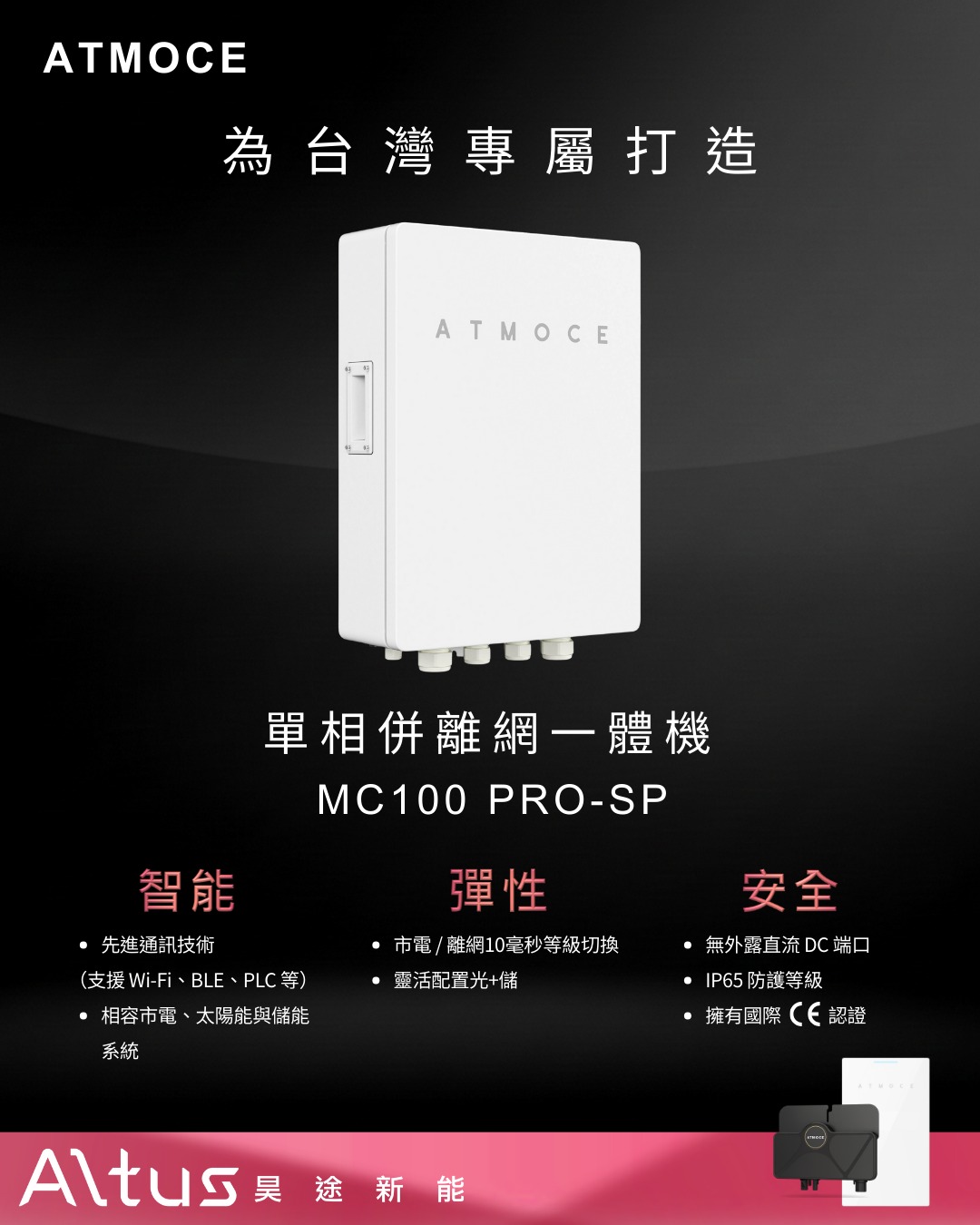 NEWS 分類選單 全部訊息 活動訊息 案例分享 產品快訊 常見問題 產品快訊 【ATMOZEN APP|全新自動網站建立功能】 2026年01月27日 產品快訊 【專為台灣打造|ATMOCE MC100 PRO-SP 單相併離網一體機】 2026年01月20日 產品快訊 【ATMOCE 監控系統|您的家庭能源智慧管家】 2026年01月16日 產品快訊 【為什麼有些儲能電池,用久了就不耐用?】 2026年01月13日 產品快訊 【ATMOCE 超低壓儲能系統 從安全與穩定開始】 2025年12月23日 產品快訊 【全球首款 極致低壓⚡️最強太陽能微型逆變器】 2025年12月16日 產品快訊 全球首款超低壓ELV儲能電池 2025年11月24日